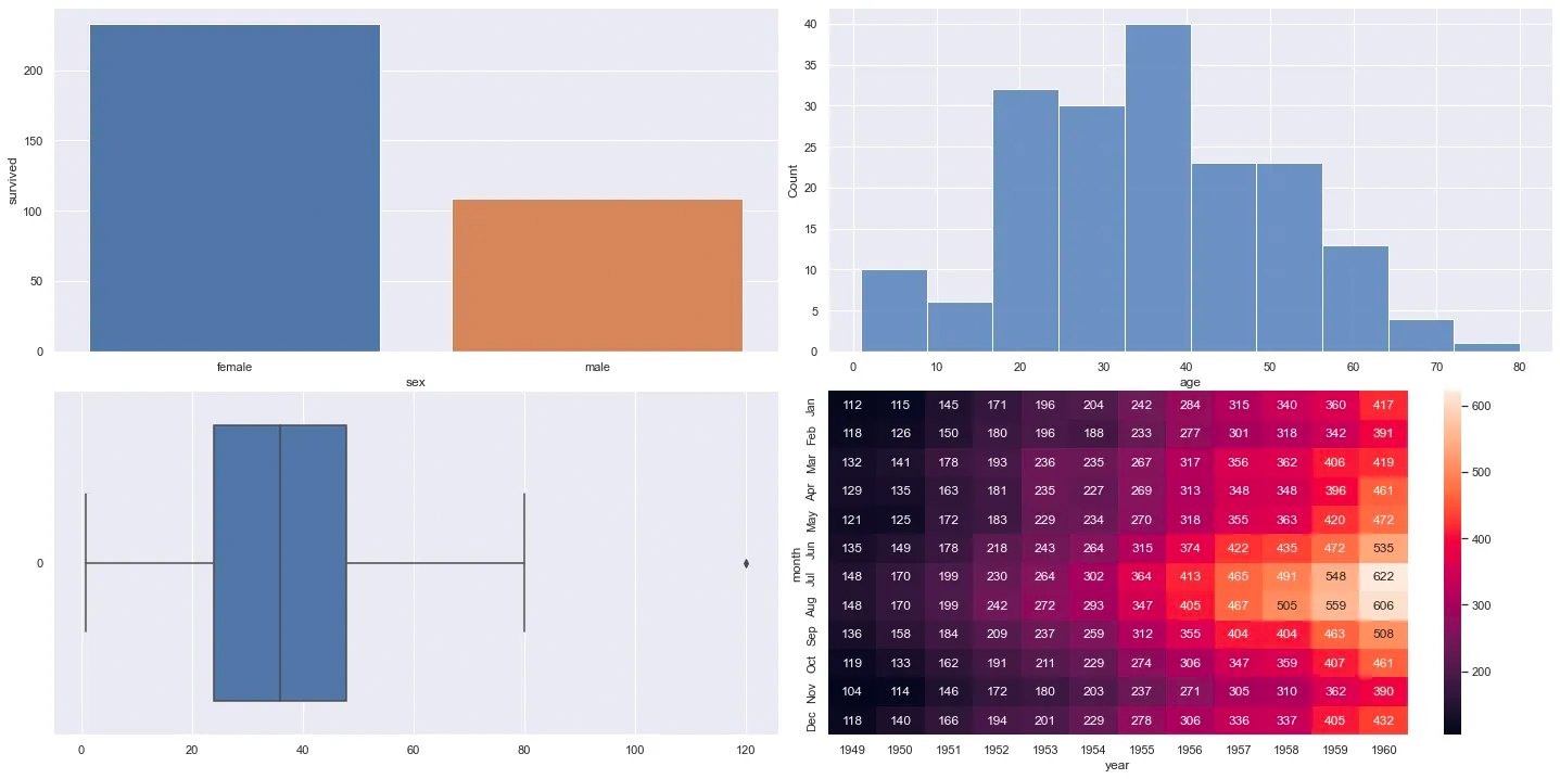 Seaborn is one of the most powerful tools for plotting various types of graphs in Python. It’s perfect for exploratory data analysis and for gaining a deep understanding of how data behaves in a database.